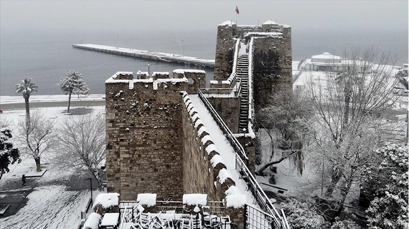 Milattan önce 7. yüzyılda kurulan ve 2013 yılında UNESCO'nun Dünya Mirası Geçici Listesi'ne dahil edilen deniz kıyısındaki Sinop Kalesi, kar yağışıyla birlikte ayrı bir güzellik oluşturdu.