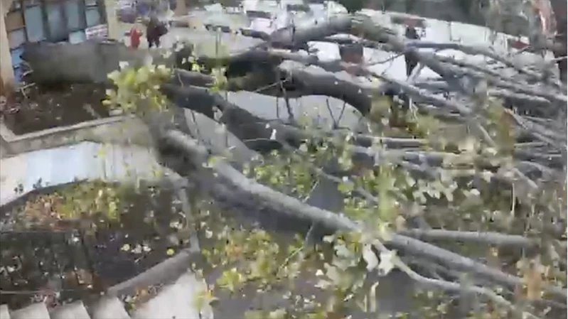 Öte yandan, ağacın devrildiği anlar, olay yerindeki güvenlik kamerasınca kaydedildi.