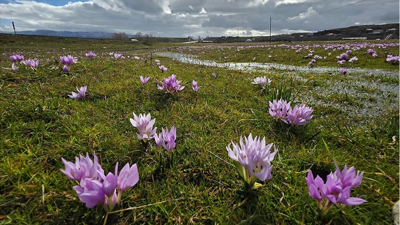 Halk arasında "baharın müjdecisi" olarak bilinen mor renkli çiğdemler doğada güzel görüntüler oluşturdu.