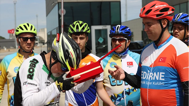Bisikletçilerin Selanik'ten Samsun'a taşıdığı "Ata toprağı" Tekirdağ'a ulaştı