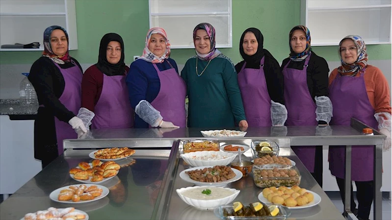 Mesleki Eğitim Merkezi'nde kendileri için oluşturulan mutfakta hazırladıkları yöresel yemekleri satışa sunan kadınlar, kazandıklarıyla aile bütçelerine katkıda bulunuyor.