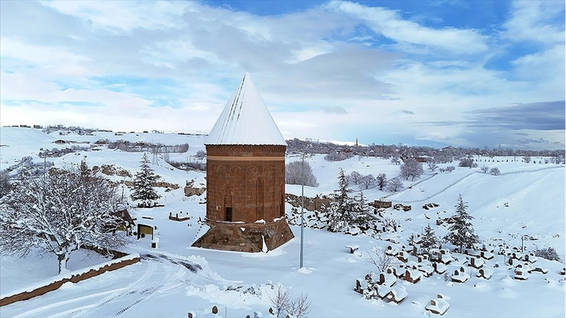 BITLIS (AA) - UNESCO Dünya Mirası Geçici Listesi'nde yer alan dünyanın en büyük Türk-İslam mezarlıklarından biri olan Selçuklu Meydan Mezarlığı, kümbetler, mağara evler ve Bayındır Köprüsü karla kaplandı.