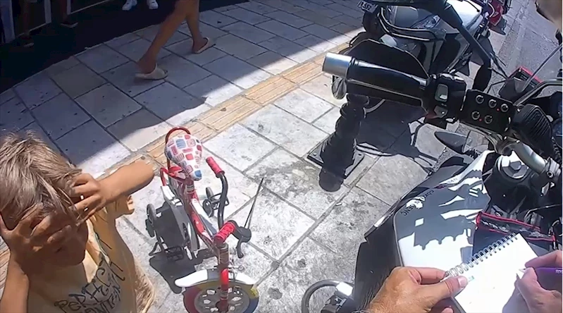 MUĞLA (AA) - İlçe Emniyet Müdürlüğünde görevli motosikletli trafik polisi Gökhan Genç, Cevat Şakir Caddesi'nde ilerlediği sırada, 6 yaşlarındaki Aslan isimli çocuğun kaldırımda bisikletiyle ilerlediğini fark etti.