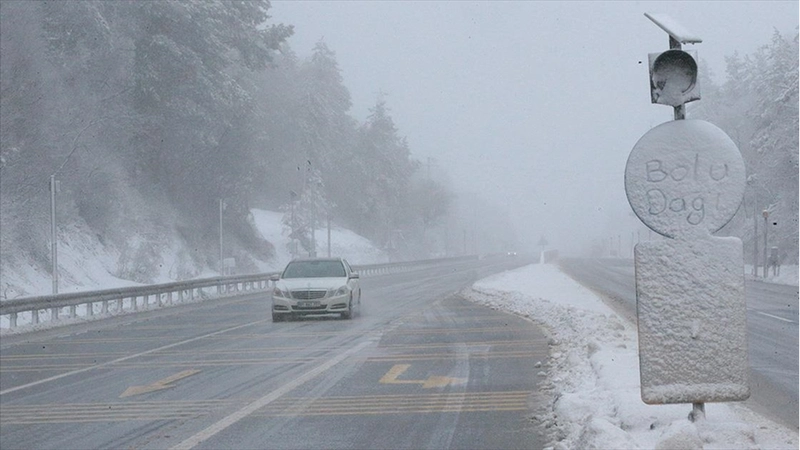 DÜZCE (AA) - Kar yağışı, otoyolun Yumrukaya, Abant kavşağı, Bolu Dağı Tüneli ve viyadükler mevkisinde, D-100 kara yolunda ise Yumrukaya, Abant kavşağı, Elmalık, Bolu Dağı Polisevi, Bakacak ve Karanlıkdere kesimlerinde görülüyor.