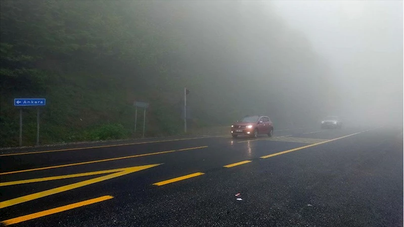 DÜZCE (AA) - İstanbul ile Ankara arasında ulaşımı sağlayan kara yolunun Bolu Dağı kesimi Elmalık, Bakacak ve Karanlıkdere mevkilerinde sis nedeniyle görüş mesafesi azaldı.