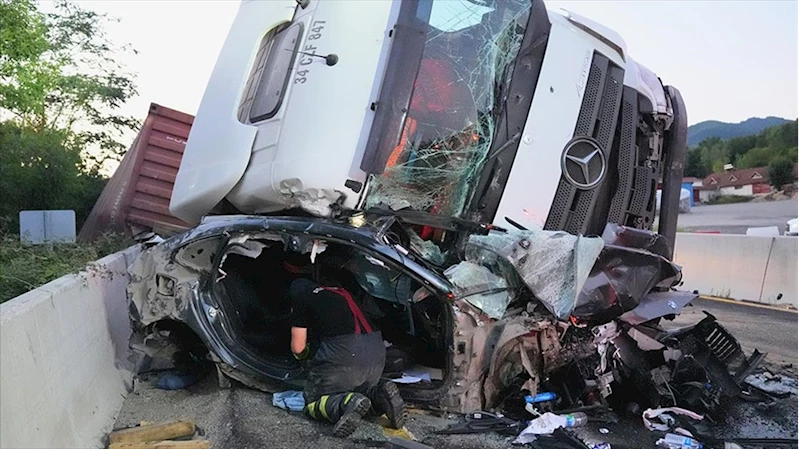Bolu Dağı'nda zincirleme kazada tırın altında kalan otomobilin sürücüsü kurtarıldı
