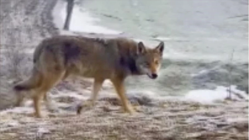BOLU (AA) - Munduşlar köyü Salmanlar Mahallesi yolunda aracıyla ilerleyen İsmail Ceyhan, yol üzerinde kurt gördü.