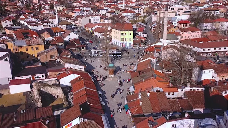 Bosna Hersek'in Osmanlı mirası çarşısındaki Sebil çeşmesi havadan görüntülendi