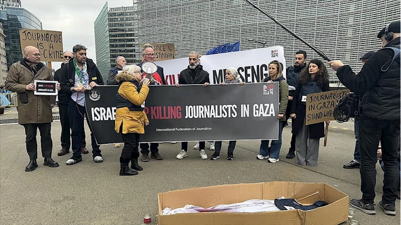 BRÜKSEL (AA) - Brüksel merkezli Uluslararası Gazeteciler Federasyonu (IFJ), İngiltere ve İrlanda'da faaliyet gösteren Ulusal Gazeteciler Birliği (NUJ) ve Filistin Gazeteciler Sendikası (PJS) temsilcileri, yerel saatle 12.30 civarında Avrupa Birliği (AB) kurumlarının bulunduğu Schuman Meydanı'nda toplandı.