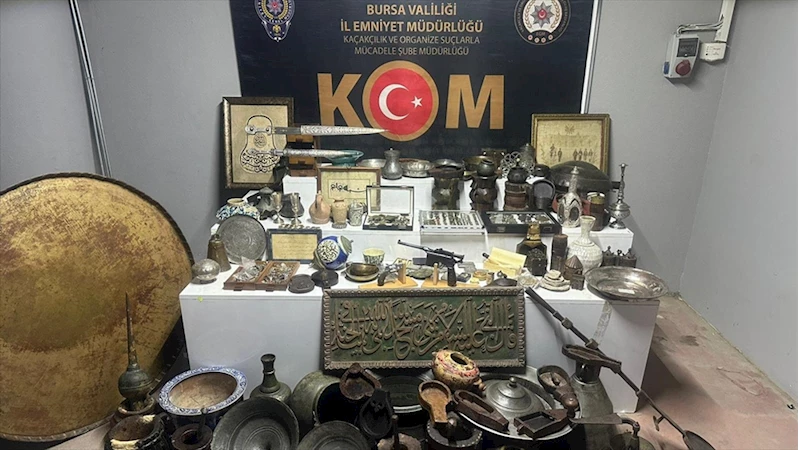BURSA (AA) - Bursa Emniyet Müdürlüğü Kaçakçılık ve Organize Suçlarla Mücadele Şubesi ekipleri, tarihi eser kaçakçılığını önlemeye yönelik çalışmaları kapsamında M.K'nin evinde çok sayıda parça olduğu bilgisine ulaştı.