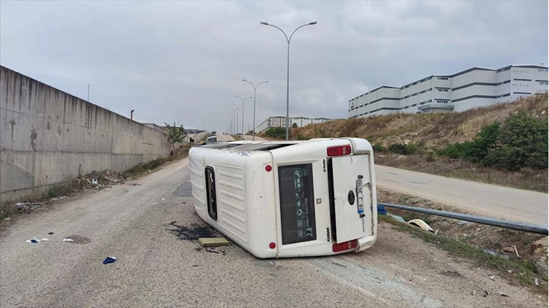 Bursa'da işçi servisi minibüsünün devrildiği kazada 13 kişi yaralandı