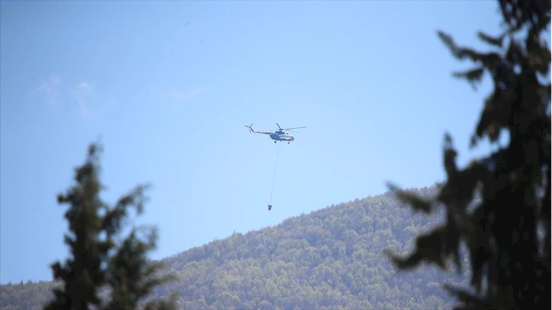 Bursa İl Jandarma Komutanlığı helikopterinin desteğiyle kontrol altına alınan yangında soğutma çalışmaları sürüyor.