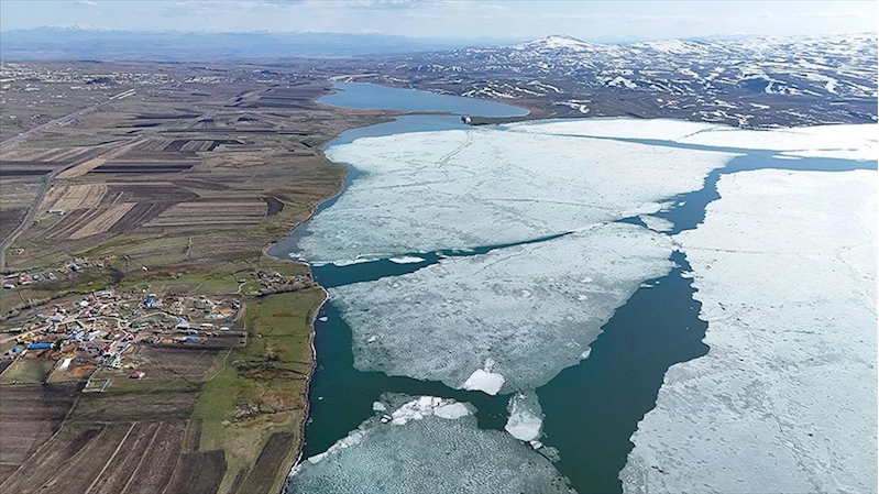 KARS (AA) - Kars-Ardahan sınırındaki 123 kilometrekare alana sahip Çıldır Gölü'nün yüzeyinde, soğuk hava nedeniyle geçen yıl aralık ayında oluşan buz tabakaları, 5 ay sonra erimeye başladı.
