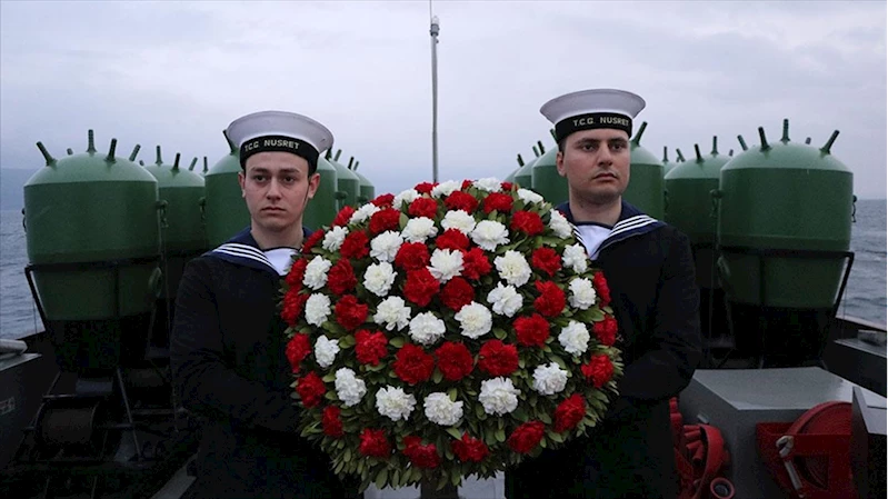 Geminin komutanı Üsteğmen Ersin Taşkın, törende, Çanakkale Savaşları'nın ilk aşamasını oluşturan 18 Mart Deniz Zaferi'nin dünya harp tarihine mal olmuş bir kahramanlık destanı olduğunu söyledi.