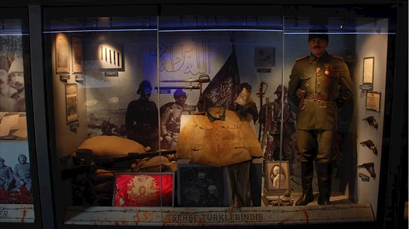 "Müzemiz 7 vitrinden oluşuyor. Vitrinlerimiz kronolojik sırayla ilerliyor. İlk vitrinlerimiz savaş öncesi, savaş çağrısı yaptığımız bir vitrinimiz. İkinci vitrinimizde Türk askerimizi tanıyoruz. Üçüncü vitrinimizde düşman askerleri tanıyoruz. Kullandığı ekipmanları görüyoruz. Dördüncü vitrinimizde ise deniz savaşlarını işliyoruz. Beşinci vitrinimiz de kara savaşları. Altıncı vitrinimizde komutanlarımıza saygı ve yedinci vitrinimizde de savaş sonrası kalan ekipmanları görüyoruz."