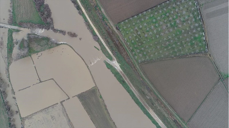 Çanakkale'de taşkın nedeniyle su altında kalan tarım arazileri dronla görüntülendi