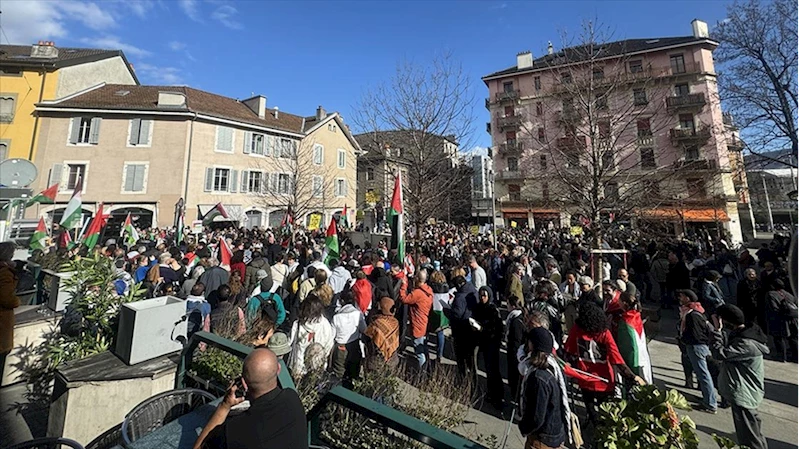 CENEVRE (AA) - Kentteki Parc Des Cropettes Meydanı'nda toplanan binlerce kişi, İsrail'in 7 Ekim 2023’ten bu yana Gazze'de gerçekleştirdiği saldırıları protesto etti.