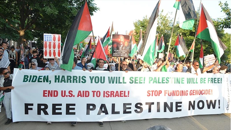 CHICAGO (AA) - Chicago'da pazartesi günü başlayan Demokrat Parti Kongresi boyunca ABD'nin İsrail'e desteğini kesmesini talep eden grupların gösterileri devam ediyor.