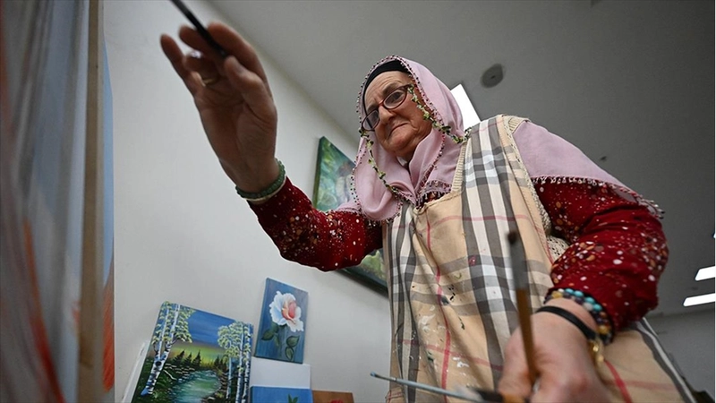 "Kurs açılınca hemen kayıt yaptırdım, kaçırmak istemedim. Hayalimde resim yapmak hep vardı. 69 yaşında kursa başladım, şimdi 72 yaşındayım. Elimden geldiği kadar ve hocamın yardımıyla bir şeyler yapmaya çalışıyorum. Resim yapmaktan çok keyif alıyorum, evde oturmak istemiyorum. Daha iyisini, daha güzelini yapmak istiyorum."
