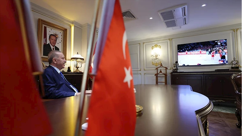 Cumhurbaşkanı Erdoğan, A Milli Basketbol Takımı'nın maçını Adana Valiliğinde izledi