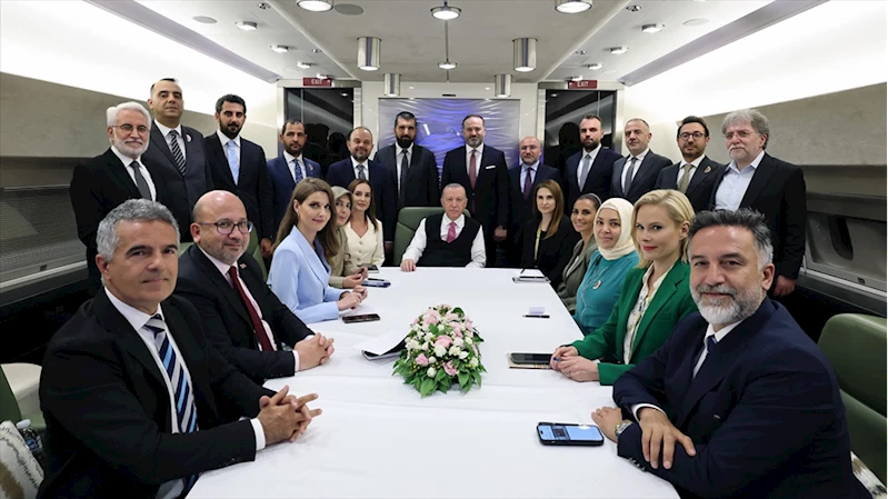 Erdoğan, NATO Devlet ve Hükümet Başkanları Zirvesi'ne katılmak üzere ziyaret ettiği ABD'nin başkenti Washington'dan dönüşünde uçakta gazetecilerin sorularını yanıtladı, değerlendirmelerde bulundu.