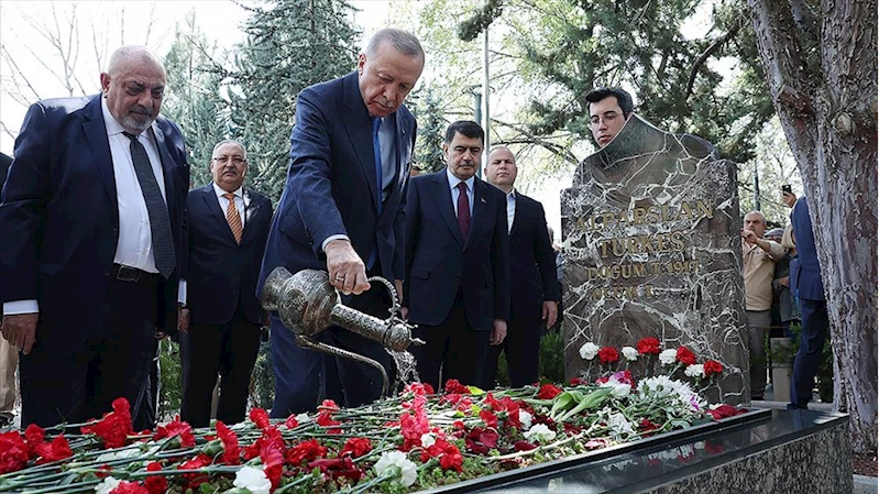 ANKARA (AA) - Cumhurbaşkanı Recep Tayyip Erdoğan, merhum Alparslan Türkeş'in oğlu, AK Parti Ankara Milletvekili Yıldırım Tuğrul Türkeş ile geldiği anıt mezarda dua okudu.