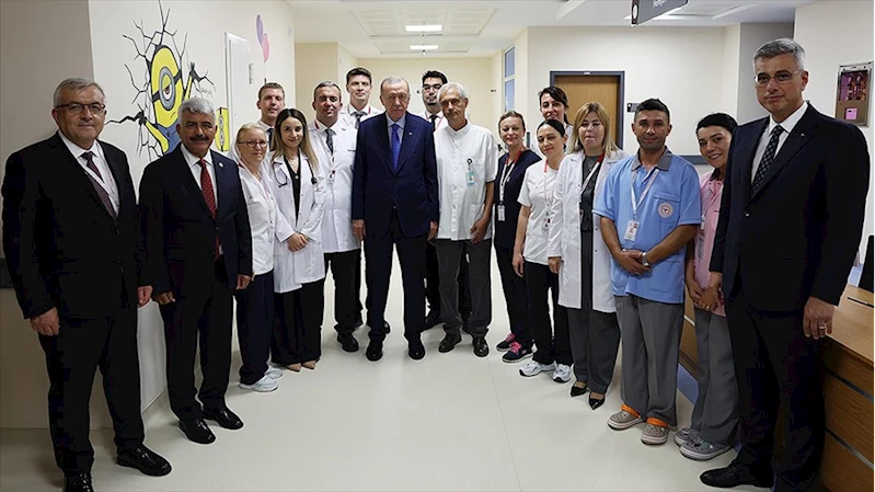 Hastaların ailelerinin hal ve hatırlarını da soran Erdoğan, hastanede görev yapan doktorlara, hemşirelere ve personele yeni binalarının hayırlı olmasını diledi.