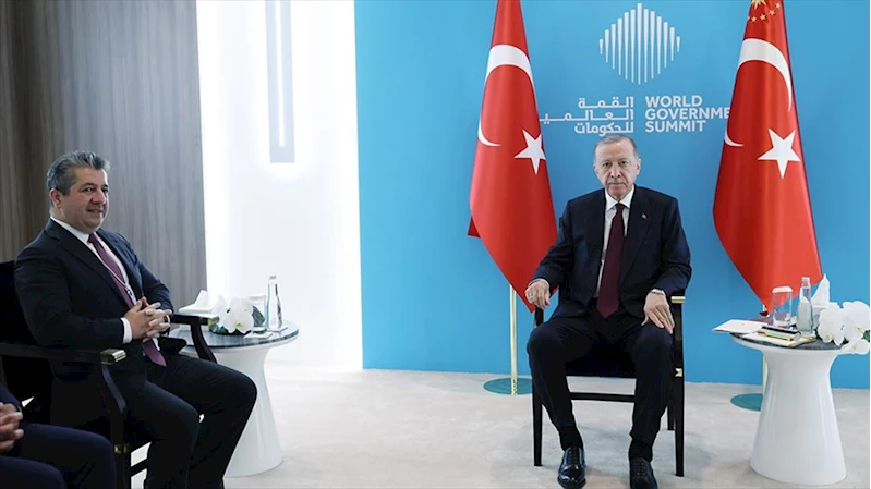 ANKARA (AA) - Cumhurbaşkanı Erdoğan, onur konuğu olarak katıldığı "Geleceğin Hükümetlerini Şekillendirmek" teması altında düzenlenen Dünya Hükümetler Zirvesi'ndeki ikili temasları kapsamında, Barzani'yi kabul etti.