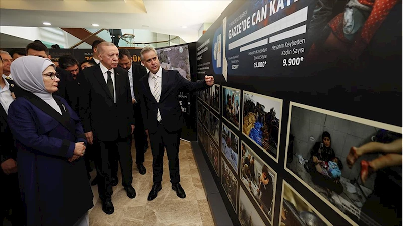 Cumhurbaşkanı Erdoğan, İsrail'in Filistin'e yönelik saldırılarını anlatan sergiyi gezdi