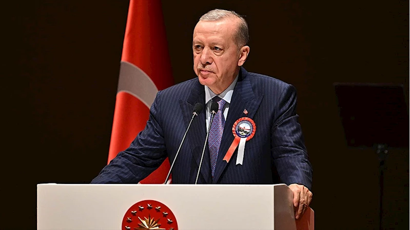 Erdoğan, Türkiye'nin, coğrafi bakımdan stratejik avantajlar sunduğu kadar, tehdit ve tehlikeleri de beraberinde getiren bir konumda yer aldığına dikkati çekerek, "İnsanlığın gündemini meşgul eden hemen her kriz ülkemizin çevresinde yaşanıyor. Rusya ile Ukrayna arasındaki savaş 2,5 yılını geride bırakmak üzere. Bir tarafın diğerine tam üstünlük sağlayamadığı çatışmalar zaman zaman tırmanarak ve ciddi can kayıplarına ve yıkımlara yol açarak devam ediyor. Yakın gelecekte üzülerek ifade etmek isterim ki savaşı sona erdirmeye dönük güçlü bir irade de görünmüyor." değerlendirmesinde bulundu.