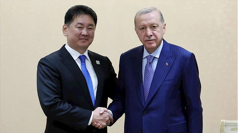 Cumhurbaşkanı Erdoğan, Moğolistan Cumhurbaşkanı Khurelsukh ile bir araya geldi