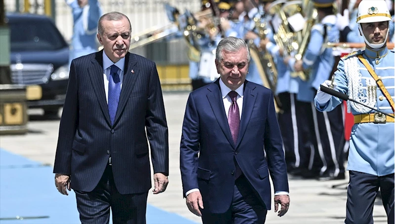 Cumhurbaşkanı Erdoğan, Özbekistan Cumhurbaşkanı Mirziyoyev'i resmi törenle karşıladı
