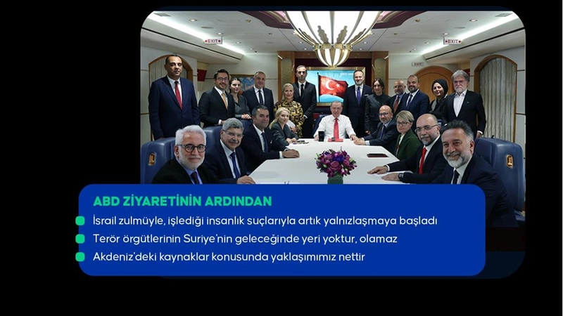 Amerika ile ilişkilerimizi, karşılıklı saygı temelinde ilerletiyoruz. Tek görüşmeyle her meseleyi halletmek tabii ki mümkün değil. Fakat bu temas, birçok konuda anlamlı ilerleme sağlamamıza yol açtı. İki ülkenin ticaret hacmi de potansiyeli de ortada. 100 milyar dolarlık ikili ticaret hedefimiz var. Liderler olarak bunu harekete geçirecek politik iradeye sahibiz. Görüşmemizde ticaret ve yatırımların yanı sıra Gazze'deki insani felaketi ve Suriye konusunu da ele aldık. Sayın Trump'ın küresel barış vizyonunu ben de destekliyorum. Akan kanın durması noktasında iki tarafta da bir mutabakat söz konusu. İnşallah bu konuda da kısa sürede bir açılım sağlarız. Yemekte de bütün bu konuları her yönüyle ele alma fırsatını bulduk. Gerek şahsım, gerek bakan arkadaşlarımla birlikte bunları değerlendirdik."