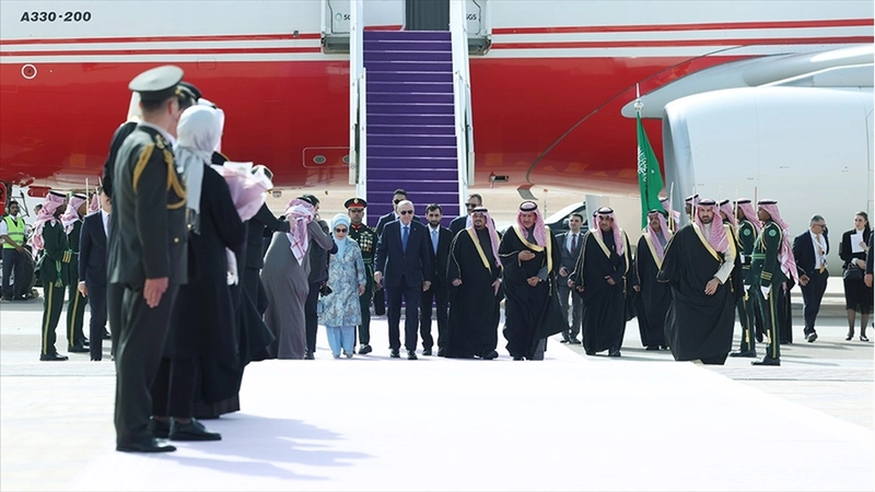Cumhurbaşkanı Erdoğan ile birlikte eşi Emine Erdoğan, Dışişleri Bakanı Hakan Fidan, Hazine ve Maliye Bakanı Mehmet Şimşek, Aile ve Sosyal Hizmetler Bakanı Mahinur Özdemir Göktaş, Enerji ve Tabii Kaynaklar Bakanı Alparslan Bayraktar, Sanayi ve Teknoloji Bakanı Mehmet Fatih Kacır, Gençlik ve Spor Bakanı Osman Aşkın Bak, Milli Savunma Bakanı Yaşar Güler, Sağlık Bakanı Kemal Memişoğlu, Cumhurbaşkanlığı İletişim Başkanı Burhanettin Duran, Cumhurbaşkanı Dış Politika ve Güvenlik Başdanışmanı Akif Çağatay Kılıç ile bazı yetkililer de Suudi Arabistan'a geldi.