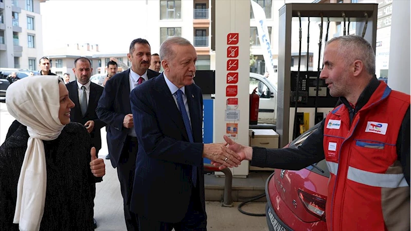 Cumhurbaşkanı Erdoğan, Üsküdar'da akaryakıt istasyonu çalışanlarını ziyaret etti