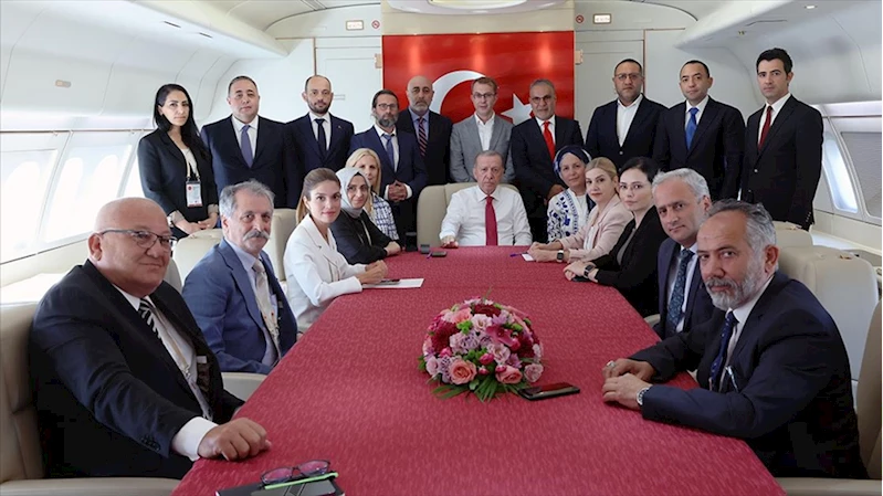 ANKARA (AA) - Cumhurbaşkanı Recep Tayyip Erdoğan, Kıbrıs Barış Harekatı'nın 50. yılı kutlama programına katılmak üzere gittiği Kuzey Kıbrıs Türk Cumhuriyeti'nin (KKTC) başkenti Lefkoşa'dan dönüşünde uçakta gazetecilere açıklamalarda bulundu ve soruları yanıtladı.