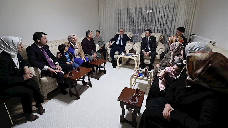 Cumhurbaşkanı Erdoğan daha sonra, depremzedeler için inşa edilen BAYKAR Konutları'nda ikamet eden Karakuş ailesiyle evlerinde bir araya geldi.