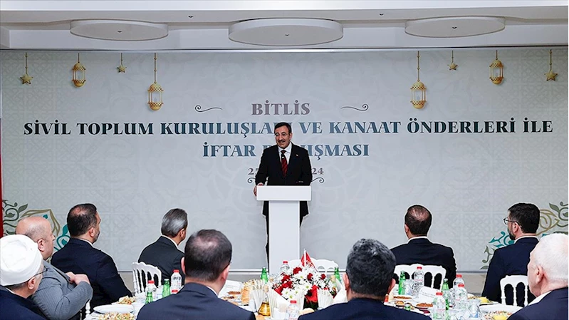 BİTLİS (AA) - Bitlis programı kapsamında, Bitlis Polisevi'nde düzenlenen "Sivil Toplum Kuruluşları ve Kanaat Önderleri ile İftar Buluşması"na katılan Cumhurbaşkanı Yardımcısı Cevdet Yılmaz, iftardan sahura, şehir şehir milletle kardeşlik soflarında buluştuklarını söyledi.