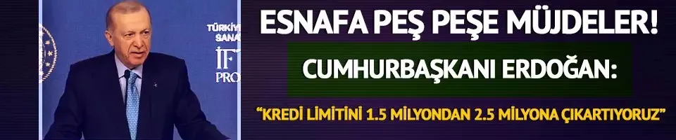 Cumhurbaşkanı Erdoğan'dan esnafa kredi müjdesi! "1.5 milyondan 2.5 milyona çıkartıyoruz"