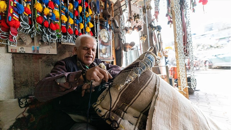 Yük ve binek hayvanlar için semer, palan (eyer) heybe ve çeşitli ekipmanları tamamen el emeğiyle üreten Ulucan, her sabah açtığı dükkanında ata yadigarı zanaatını icra ediyor.