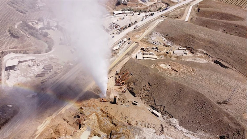 Yaklaşık 850 metre derinlikteki kaynaktan fışkıran sıcak suyun, zaman zaman 100 metreye kadar yükseldiği görüldü.