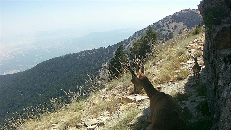Görüntülerde, etrafı kolaçan ederek yem yiyen kızıl geyik, fotokapana doğru bakan tilki ile dağlarda gezen dağ keçileri yer alıyor.