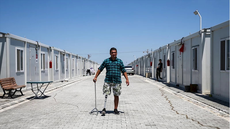 Helikopterle Adana Şehir Eğitim Araştırma Hastanesine sevk edilmesinin ardından bacağının kesilmek zorunda kaldığını ifade eden Esmergil, yaklaşık 1 yıl süren tedavi sürecinin ardından konteyner kente yerleştiğini dile getirdi.