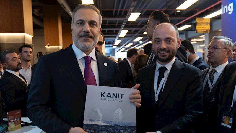 Fidan'a, Özhan tarafından İsrail ordusunun Gazze'deki saldırılarında Roma Statüsü'nün ihlal edilen maddelerini ortaya koyan olayların kanıtlarını bir araya getiren AA'nın "Kanıt" kitabı takdim edildi.