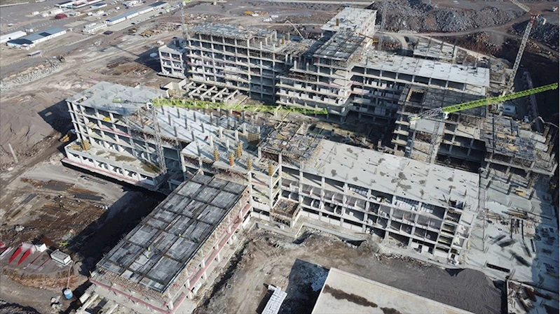 Diyarbakır'da yapımı süren Kayapınar Şehir Hastanesi hızla yükseliyor
