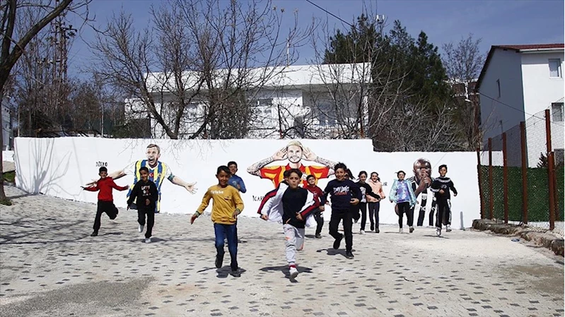 Diyarbakırlı çocukların futbolcuların resimlerinin çizildiği duvar önündeki fotoğrafını milyonlar gördü
