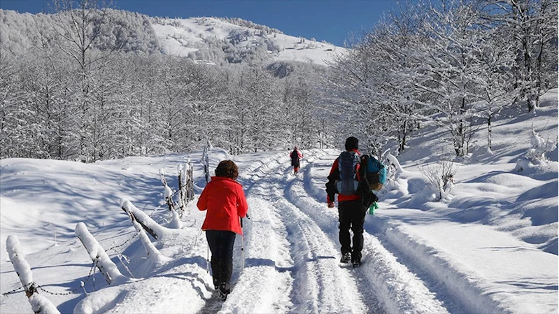 Doğaseverler kar altında kalan "Kadıralak Yaylası"na yürüdü