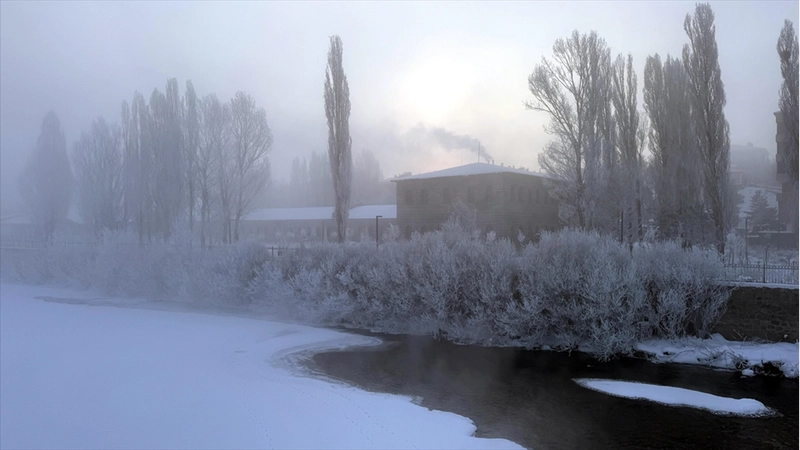 Gece hava sıcaklığının sıfırın altında 21,3 derece ölçüldüğü Erzurum'da, ağaçlar, bitkiler ve dereler buz tuttu.