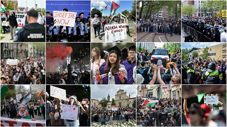 ANKARA (AA) - ABD'deki üniversitelerde başlayıp gösterilerin yeni merkezi haline gelen Avrupa dahil dünyada birçok üniversitede Filistin'e destek gösterileri tüm hızıyla devam ediyor.