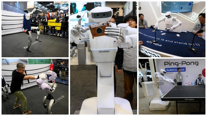 Robotlar fotoğraf çekiyor, piyano çalıyorSingapur merkezli yapay zeka robotik şirketi Sharpa'nın dokunsal geri bildirimle desteklenen, otonom ve becerikli bir işlem dizisini gerçekleştiren robotları, fuarın en çok ziyaretçi çeken stantları arasında yer aldı.